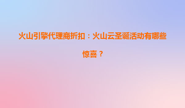 2025-08-06火山引擎代理商折扣:火山云圣诞活动惊喜大放送 一、火山云圣诞活动惊喜盘点 随着圣诞季的到来,火山引擎为企业和开发者带来了一场技术盛宴——火山云圣诞狂欢活动。作为官方授权代理商...