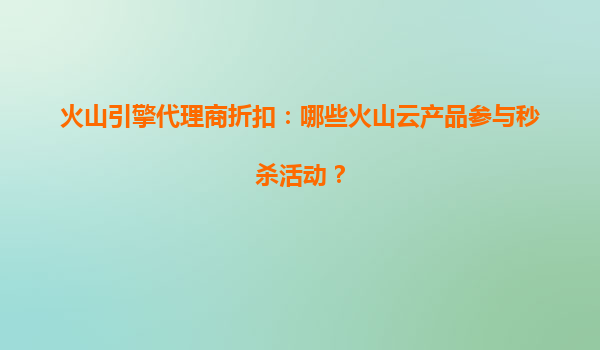 2025-08-06火山引擎代理商折扣:哪些火山云产品参与秒杀活动? 一、火山云的核心优势与秒杀活动背景 火山引擎作为字节跳动旗下的云计算服务品牌,凭借其高性能计算资源、弹性扩展能力及全球化覆盖的节点布局,...