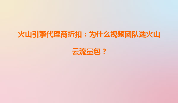 2025-08-06火山引擎代理商折扣:视频团队为何青睐火山云流量包? 一、高性价比流量包,降低视频业务成本 对于视频团队而言,流量消耗是核心成本之一。火山云通过代理商渠道提供阶梯式流量包折扣,用量越大单价越低,...