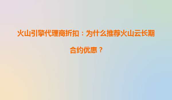 2025-08-06火山引擎代理商折扣:为什么推荐火山云长期合约优惠? 在数字化转型的浪潮中,云计算已成为企业提升效率、降低成本的核心工具。作为字节跳动旗下的云计算品牌,火山引擎凭借其强大的技术实力和丰富的行业经验,...