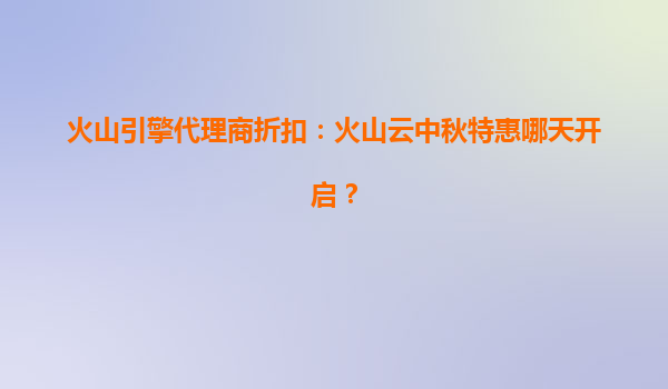 2025-08-06火山云中秋特惠来袭,企业上云最佳时机不容错过 火山云中秋特惠活动正式官宣 金秋九月,火山云为广大企业用户带来重磅福利——2023年火山云中秋特惠活动将于9月15日正式开启!作为火山引擎旗下的云计...