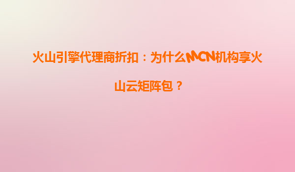 火山引擎代理商折扣:MCN机构为何青睐火山云矩阵包? 一、火山云矩阵包的核心价值 火山云矩阵包是火山引擎面向MCN机构推出的定制化解决方案,通过整合计算、存储、CDN等基础资源与短视频生态工具,帮助机构...