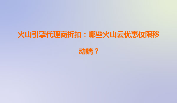 火山云移动端专属优惠解析 随着移动互联网的快速发展,越来越多的企业开始将业务重心转向移动端。火山云作为国内领先的云计算服务提供商,针对移动端用户推出了多项专属优惠活动,帮助企业在数字化转型过程中降...