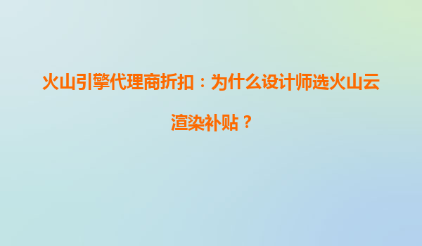 2025-08-05火山引擎代理商折扣:为什么设计师选火山云渲染补贴? 高效渲染助力创意落地 在数字内容创作领域,时间就是竞争力。火山云渲染凭借强大的分布式计算能力,能够大幅缩短3D动画、影视特效等复杂项目的渲染时...