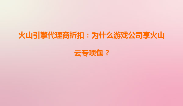 2025-08-06火山引擎代理商折扣:为什么游戏公司享火山云专项包? 一、火山云的核心优势与游戏行业的契合点 火山云作为字节跳动旗下的云计算服务平台,凭借其全球化基础设施布局和音视频技术基因,在游戏行业解决方案上...