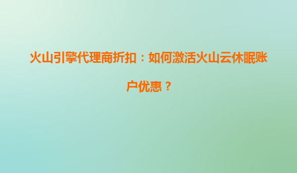 2025-08-06火山引擎代理商折扣:如何激活火山云休眠账户优惠? 一、火山云休眠账户优惠的背景 火山云作为字节跳动旗下的云计算服务品牌,凭借强大的技术实力和丰富的行业经验,为企业用户提供...
