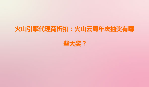 2025-08-03火山引擎代理商折扣:火山云周年庆抽奖有哪些大奖? 一、火山云周年庆抽奖活动概览 火山云作为火山引擎旗下的云计算服务品牌,在周年庆期间推出了丰厚的抽奖活动,旨在回馈广大用户和代理商的支持。本...