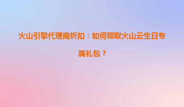 2025-08-04火山引擎代理商折扣:如何领取火山云生日专属礼包? 一、火山云的核心优势 火山云作为字节跳动旗下的云计算品牌,依托全球领先的技术架构和丰富的行业经验,为企业提供高性能、高可靠的云服务解决...