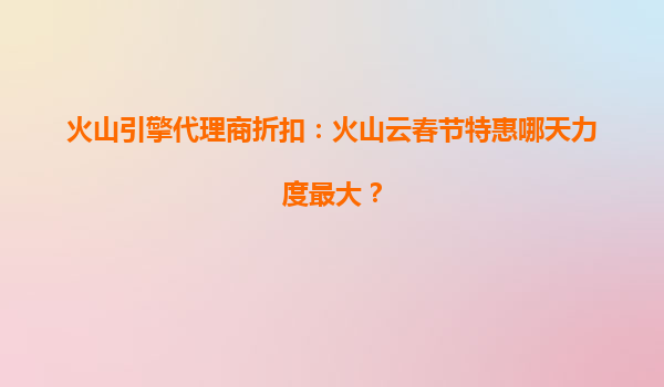 2025-08-03火山引擎代理商折扣解析:火山云春节特惠哪一天力度最大? 一、火山云春节特惠活动概览 火山云作为字节跳动旗下火山引擎推出的云计算服务,每年春节都会推出限...