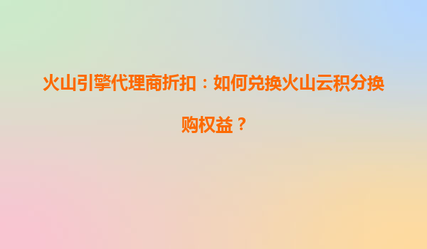 2025-08-03火山引擎代理商折扣:如何兑换火山云积分换购权益? 一、火山云的核心优势 火山云作为字节跳动旗下的云计算服务品牌,依托字节跳动强大的技术积累和全球资源,为企业客户提供高性能、高可靠性的云...