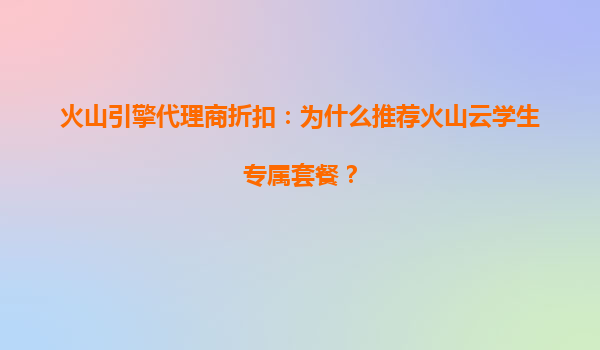 火山引擎代理商折扣:为什么推荐火山云学生专属套餐? 1.学生专属套餐的性价比优势 火山云学生专属套餐是专为在校学生设计的云计算服务方案,其核心优势在于极高的性价比。相比常规企业套餐,学生套餐价格...
