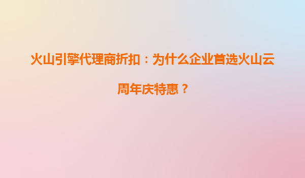 2025-08-03火山引擎代理商折扣:为什么企业首选火山云周年庆特惠? 引言 在数字化转型的浪潮中,云计算已成为企业提升效率、降低成本的核心工具。火山引擎作为字节跳动旗...