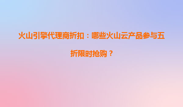 2025-08-03火山引擎代理商折扣来袭:哪些火山云产品参与五折限时抢购? 一、火山云核心产品限时五折抢购清单 火山引擎近期通过代理商渠道推出重磅福利,以下热门产品参与五折限时抢购活动(具体以代理商...