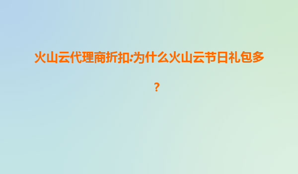 2025-08-01火山云代理商折扣:为什么火山云节日礼包多? 在云计算市场竞争日益激烈的今天,各大云服务提供商纷纷推出各种促销活动和折扣政策来吸引客户。火山云作为国内领先的云计算服务商之一,其节日礼包和代理商折扣政...