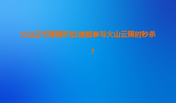 2025-07-31火山云代理商折扣:谁能参与火山云限时秒杀? 火山云限时秒杀的参与对象 火山云限时秒杀活动主要面向以下几类用户群体:首先,新注册用户可享受首单优惠,通过秒杀快速体验火山云的高性能服务;其次,企业...