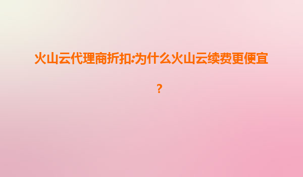 2025-07-29火山云代理商折扣:为什么续费更便宜? 代理商机制降低用户成本 火山云通过代理商体系构建了高效的分销网络,代理商通过规模化采购获得更低的云资源价格。当用户通过正规代理商续费时,代理商可将部分折扣让利...