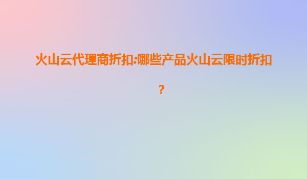 2025-07-28火山云代理商折扣:限时特惠产品详解与优势分析 一、火山云限时折扣产品清单 近期火山云针对代理商推出多款产品的限时折扣活动,以下是主要优惠产品类别及说明: 1.云计算基础服务 弹性云服务器(ECS...