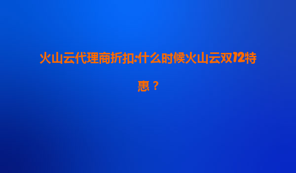 2025-07-28火山云代理商折扣:双12特惠来袭,企业上云首选方案 一、火山云双12特惠活动时间 每年的双12购物狂欢节不仅是消费者的盛宴,更是企业采购云服务的黄金时机。根据往年规律,火山云双12特惠...