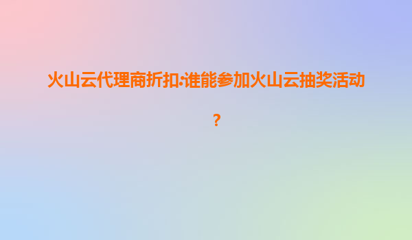 火山云代理商折扣:谁能参加火山云抽奖活动? 火山云代理商折扣活动介绍 火山云作为国内领先的云计算服务提供商,为回馈广大用户的支持,特别推出了代理商折扣...