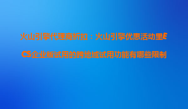2025-10-26火山引擎代理商折扣:火山引擎优惠活动中ECS企业版试用的跨地域试用功能限制解析 一、火山引擎ECS企业版跨地域试用功能概述 火山引擎作为字节跳动旗下的云计算服务平台,其ECS企业版(弹性计算服务)提供了跨地...