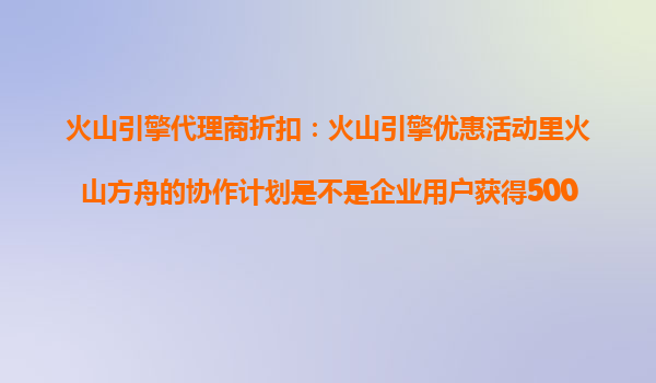 2025-10-26火山引擎代理商折扣:火山方舟协作计划的价值解析 在火山引擎的优惠活动中,火山方舟协作计划为企业用户提供了极具吸引力的资源支持。其中,500万Tokens的赠送成为许多企业关注的焦点。那么,这是否是企业用户获...