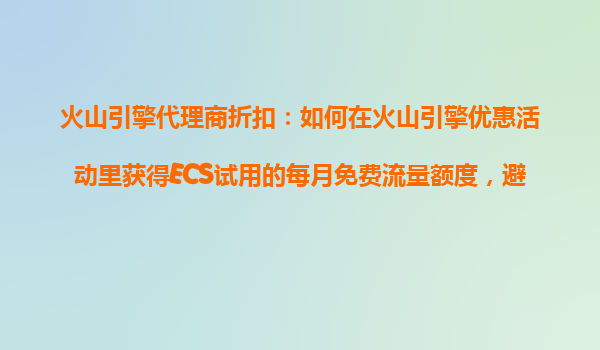 火山引擎代理商折扣:如何在火山引擎优惠活动里获得ECS试用的每月免费流量额度,避免额外流量费用? 一、火山引擎的优势与ECS服务简介 火山引擎作为字节跳动旗下的云计算品牌,依托全球数据中心和...
