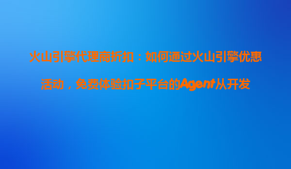 2025-10-27火山引擎代理商折扣:如何通过火山引擎优惠活动,免费体验扣子平台的Agent从开发到部署的全流程 一、火山引擎优惠活动简介 火山引擎作为字节跳动旗下的云服务平...
