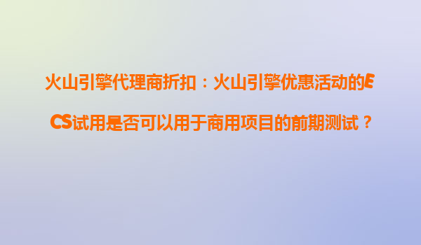 2025-10-26火山引擎代理商折扣:火山引擎ECS试用能否用于商用项目前期测试? 一、火山引擎ECS试用活动的核心价值 火山引擎近期推出的ECS(弹性计算服务)试用活动,为企业...