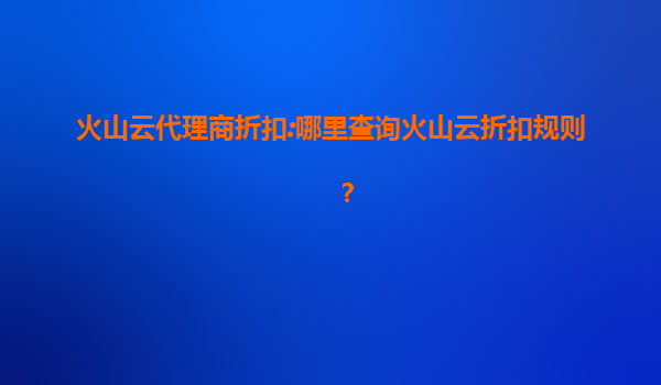 2025-07-23火山云代理商折扣:全方位解析折扣规则与渠道优势 一、火山云折扣规则查询指南 火山云作为国内领先的云计算服务商,为企业和开发者提供弹性计算、存储、数据库等全栈云服务。通过官方代理商合...