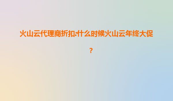 2025-07-23火山云年终大促来袭:代理商折扣与云服务优势全解析 一、火山云年终大促时间预测 根据往年活动规律及行业动态,火山云年终大促通常集中在11月中旬至12月底,与“双11”、黑五及元旦前夕的电商促销...