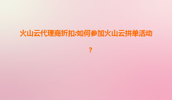 火山云代理商折扣指南:如何参与拼单活动及产品优势解析 一、什么是火山云拼单活动? 火山云拼单活动是火山引擎推出的多人联合采购优惠计划,允许用户通过代理商渠道组团购买云计算服务...