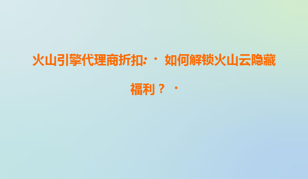 火山引擎代理商折扣:谁在预约火山云年终大促? 近年来,随着数字化转型的加速推进,企业对云计算的需求日益增长。火山云作为字节跳动旗下的企业级云服务平台,凭借其高性能、高可靠性和极具竞争力的价格,...