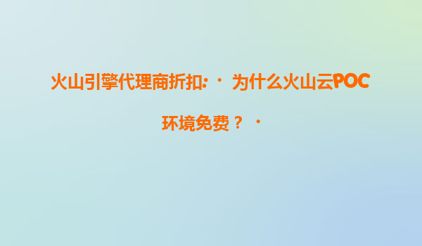 2025-07-21火山引擎代理商折扣:为什么火山云POC环境免费? 一、火山云的POC环境为何免费? 火山引擎作为字节跳动旗下的云计算服务品牌,近年来在公有云市场快速崛起。其推出的“P...