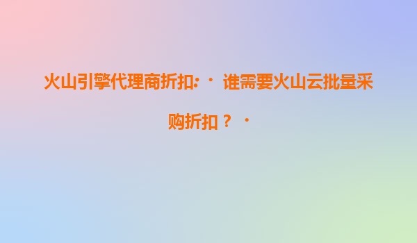 2025-07-20谁需要火山云批量采购折扣? 随着企业数字化转型的加速,云计算服务成为各行各业提升运营效率、降低IT成本的关键基础设施。火山引擎提供的火山云服务,凭借高性能、稳定可靠的特点,吸引了大量企业用户。但对于一些...