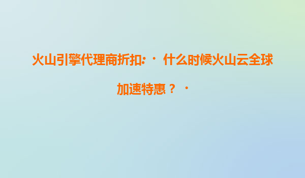 2025-07-21火山云全球加速特惠来袭:释放数字化转型潜力 一、火山云全球加速服务的核心优势 火山云作为字节跳动旗下的云计算品牌,其全球加速服务凭借“智能调度+优质线路”双引擎,已成为企业出海的首选方案。该服...