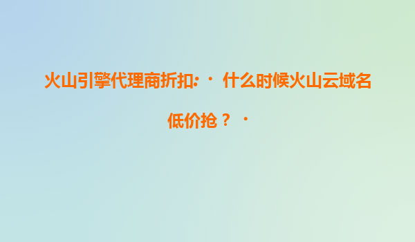 2025-07-20火山云域名低价抢活动时间解析 对于企业用户和个人开发者而言,域名是数字化转型的第一步。近期火山云推出的代理商折扣活动,让众多用户期待其域名产品的低价抢购时机。根据官方信息,火山云通常会在电商大促节点(...