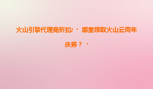 2025-07-20火山引擎代理商折扣:哪里领取火山云周年庆券? 一、火山引擎代理商优惠券领取指南 火山云在周年庆期间会通过官方渠道及代理商发放限时优惠券,用户可通过以下途径获取: ...