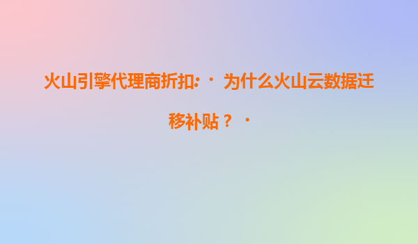 2025-07-20火山引擎代理商折扣:为什么火山云数据迁移补贴? 引言 随着云计算技术的快速发展,越来越多的企业开始将业务迁移到云端,以提升效率、降低成本并增强业务的灵活性。作为领先的云计算服务提供商之一,火山...