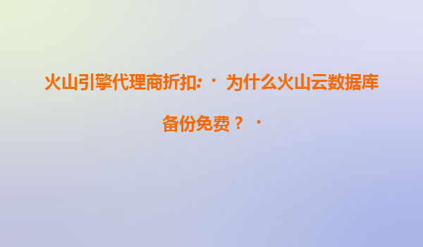 2025-07-20火山引擎代理商折扣:为什么火山云数据库备份免费? 一、火山云的核心优势与市场定位 火山引擎作为字节跳动旗下的云计算服务平台,依托字节跳动庞大的业务体量和技术积累,在数据处理、分布式架构和大...