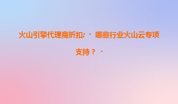 2025-07-20火山引擎代理商折扣:哪些行业可获得火山云专项支持? 前言:火山引擎与代理商的协同优势 火山引擎作为字节跳动旗下的云服务平台,凭借其强大的技术能力和丰富的行业解...