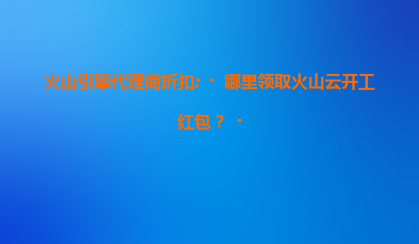 2025-07-20如何领取火山云开工红包?详解代理商折扣与火山云核心优势 一、火山云开工红包领取指南 火山引擎(VolcanoEngine)作为字节跳动旗下的云计算服务品牌,每年会通过官方活动发放"开工红包"。以下是2023年...
