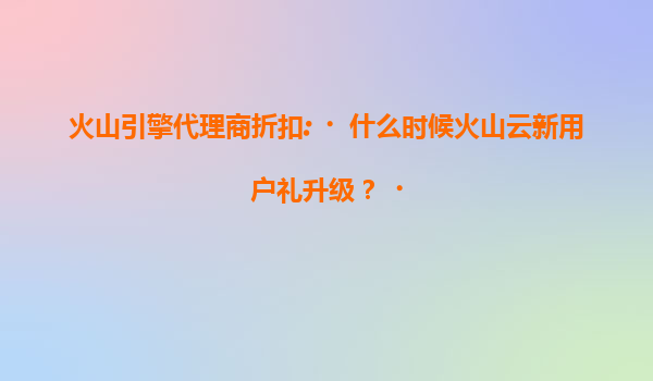 2025-07-18火山引擎代理商折扣:解读火山云新用户礼升级与生态优势 一、火山云新用户礼升级:时机与价值 近期,火山引擎宣布将对火山云新用户礼包进行全面升级,预计在202...