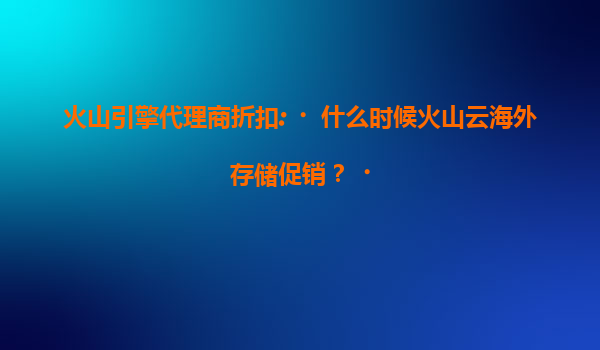 2025-07-18火山引擎代理商折扣:揭秘火山云海外存储促销时机与优势 一、火山云海外存储的核心价值 火山云作为字节跳动旗下企业级技术服务品牌,其海外存储解决方案凭借全球分布式节点布局、高可用...