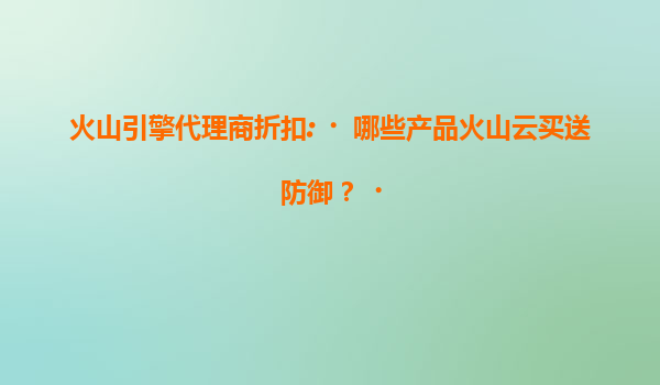 2025-07-18火山引擎代理商折扣:哪些产品火山云买送防御? 一、火山云的核心安全产品与“买送防御”活动 火山引擎作为字节跳动旗下的云计算服务品牌,其安全防护能力在行业中备受认可。通过火山云...