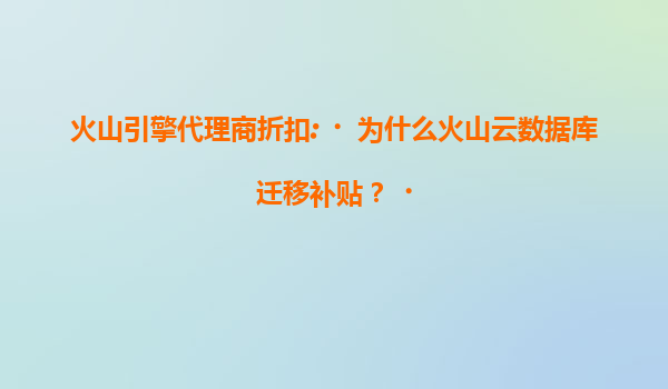 火山引擎代理商折扣:为什么火山云数据库迁移补贴? 在数字化转型的浪潮中,企业上云已成为不可逆转的趋势。作为字节跳动旗下的云计算服务品牌,火山引擎凭借其强大的技术实力和丰富的实践经验,为企业提供了一...