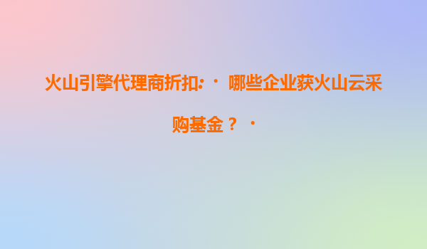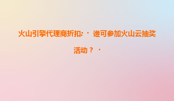2025-07-18火山引擎代理商折扣:谁可参加火山云抽奖活动? 一、火山云抽奖活动参与资格 火山云作为火山引擎旗下的云计算服务品牌,定期推出各类优惠活动和抽奖福利,以回馈用户的支持。关于“谁可...