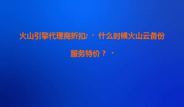 2025-07-18火山引擎代理商折扣:火山云备份服务特价活动解析与优势解读 一、火山云备份服务特价活动时间预测 火山引擎作为字节跳动旗下的云计算服务平台,其代理商折扣和特价活动通常遵循以下规律: 年度大促节点...
