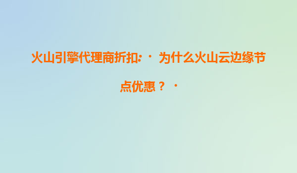 2025-07-18火山引擎代理商折扣:为什么火山云边缘节点更优惠? 一、火山云边缘节点的核心优势 火山引擎作为字节跳动旗下的云计算服务品牌,其边缘计算节点凭借以下优势成为企业上云的高性价比选择: 全...