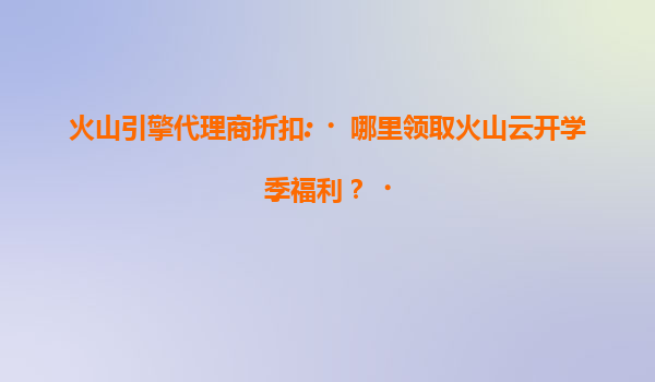 2025-07-18火山云开学季福利来袭:代理商折扣+多重好礼等你领 随着新学期的到来,火山云特别推出"开学季福利"活动,为教育行业用户、开发者及企业提供超值云计算资源与专属优惠。无论是高校科研项目、在线教育平台还是学生...