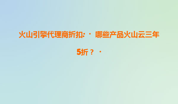 2025-07-17火山引擎代理商折扣:哪些产品可享火山云三年5折优惠? 火山引擎作为字节跳动旗下的云服务平台,近年来凭借其技术实力和行业资源积累,迅速成为企业数字化转型的重要选择之一。为吸引更多用...